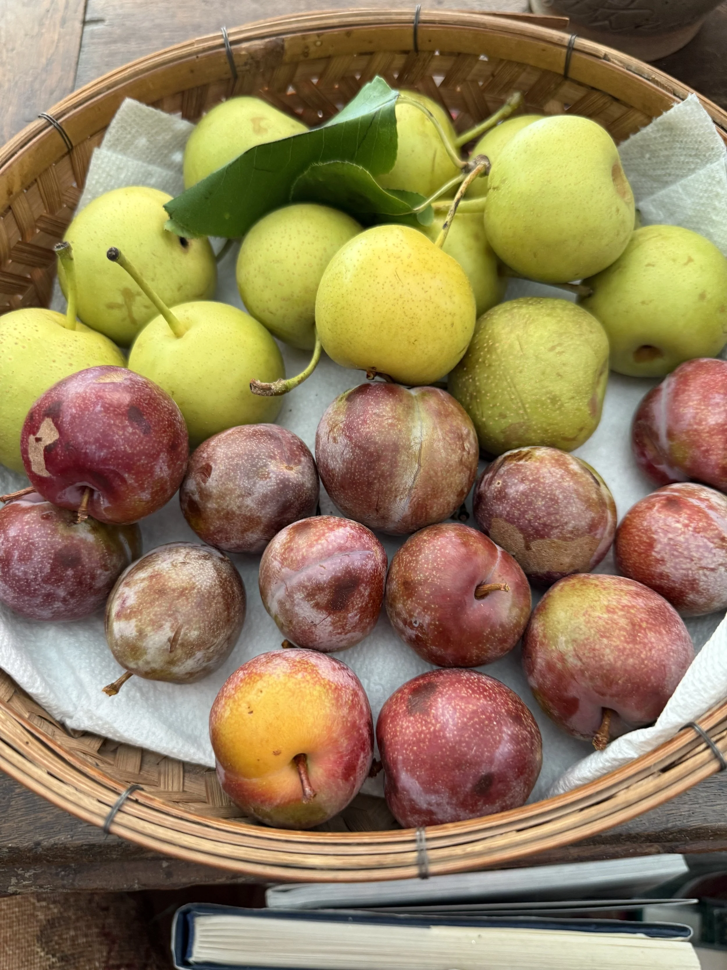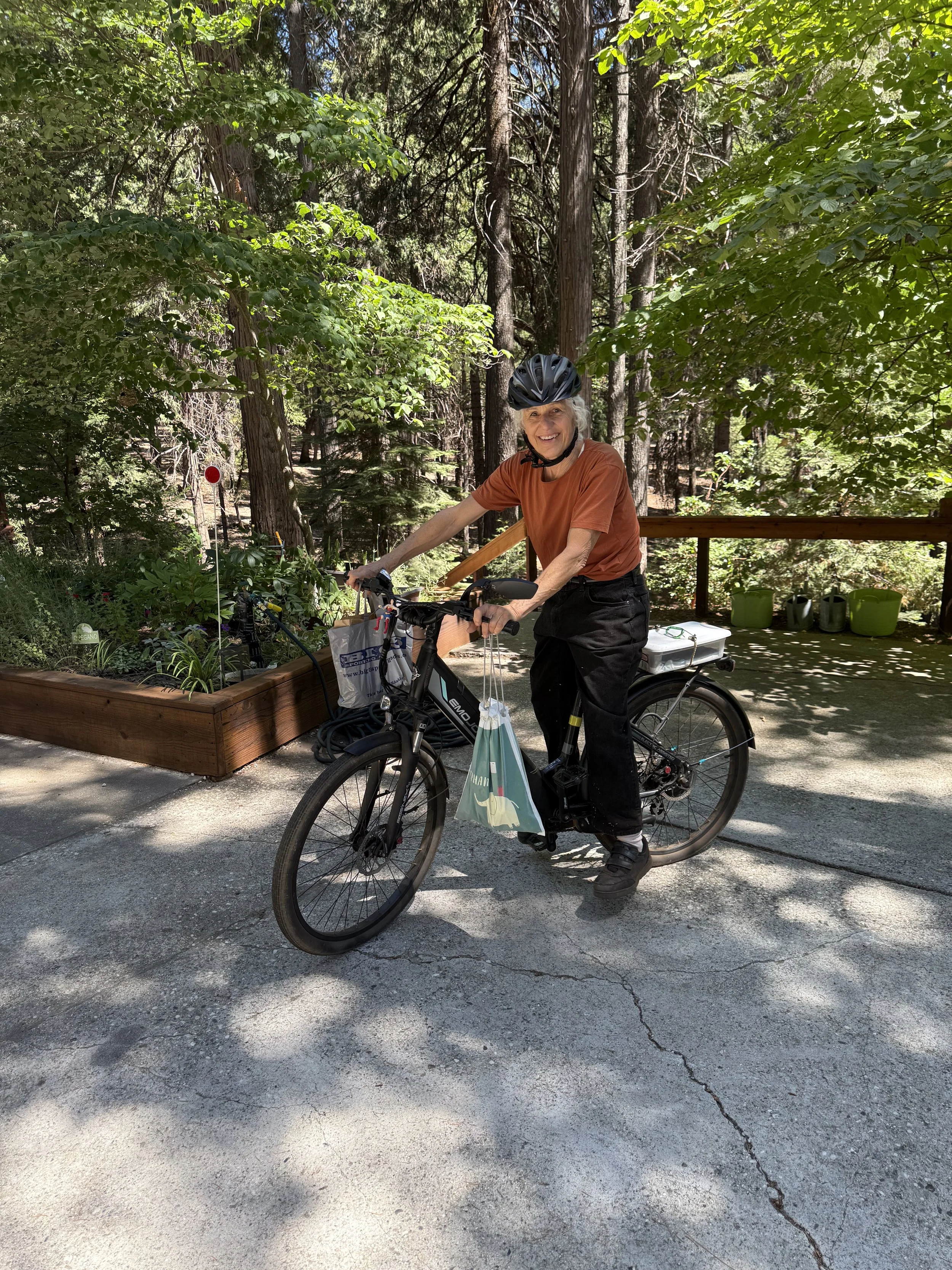 My friends on our road in the Sierra Foothills have been incredibly kind and generous since the day we arrived in April 2021. Just before Kit’s birthday, neighbor Anita delivered ripe plums and Asian pears in individually assembled bags to each of the Crystalwellians (my neighbors on this magic road we share). Four bags of local orchard fruit were carefully balanced on the handlebars of her electric bike. One neighbor mistook her for a Taco delivery driver with silver curls flying out from under her enormous black bicycle helmet.