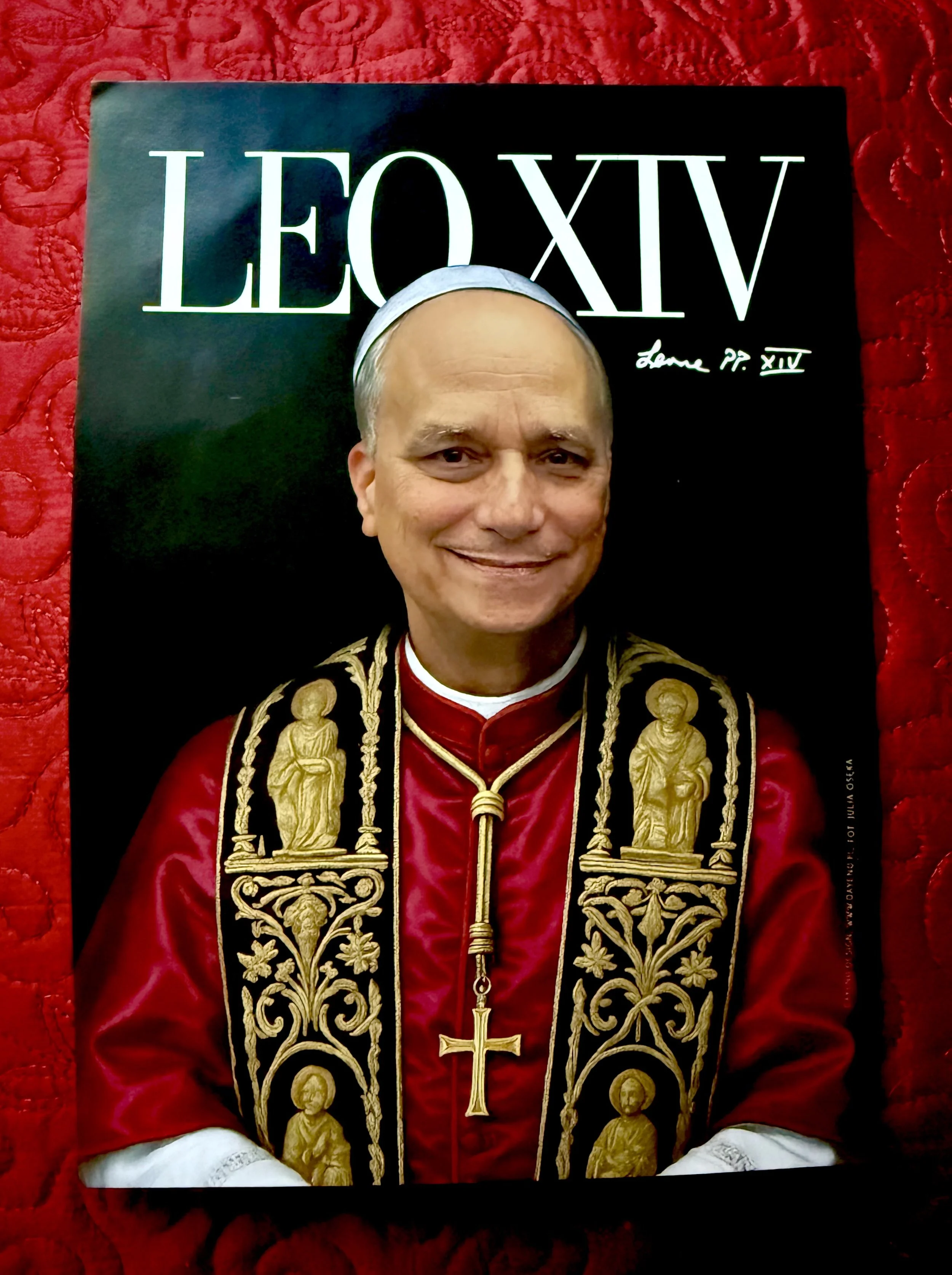 Which takes me back to Kit’s birthday. Daughter Heidi and I had planned a small celebration for that Wednesday in the Empire Room at the Lodge. Heidi would pick up orders of Chicken Korma and yogurt sauce with fresh coriander, cheese naan, Vegetable Samosas, and Basmati rice, and I’d bring him a non-alcoholic beer. Lots of cards from friends near and far were assembled in a gift bag along with a large-faced watch so he can keep up with the time when we aren’t there. There was also a splendid portrait of Pope Leo XIV that friends Tim and Phoebe brought from Rome for Kit who is our own beloved Leo extraordinaire.